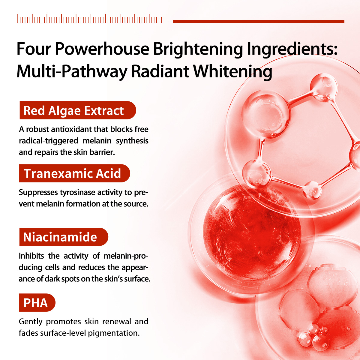 AQUA, NIACINAMIDE, BUTYLENE GLYCOL, TRANEXAMIC ACID, BETAINE, PENTYLENE GLYCOL, 1, 2-HEXANEDIOL, GLYCERIN, HYDROXYACETO-PHENONE, AMMONIUM ACRYLOYLDIMETHYL-TAURATE/BEHENETH-25 METHACRYLATE CROSSPOLYMER, BIS-PEG-15 METHYL ETHER DIMETHICONE, PROLINE, PHENOXYETHANOL, HYDROLYZED SODIUM HYALURONATE, SODIUM HYALURONATE, SODIUM ACETYLATED HYALURONATE, DISODIUM EDTA, SODIUM HYALURONATE CROSSPOLYMER, CHAMOMILLA RECUTITA (MATRICARIA) FLOWER EXTRACT, MALVA SYLVESTRIS (MALLOW) FLOWER EXTRACT, TARAXACUM OFFICINALE (DANDELION), RHIZOME/ ROOT EXTRACT, LONICERA JAPONICA (HONEYSUCKLE) FLOWER EXTRACT, PAEONIA LACTIFLORA ROOT EXTRACT, VIOLA YEDOENSIS EXTRACT, ETHYLHEXYL-GLYCERIN, ASTAXANTHIN, ALOE BARBADENSIS LEAF JUICE